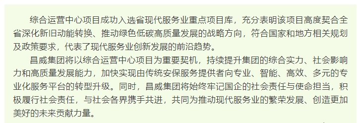 昌威集團(tuán)綜合運(yùn)營(yíng)中心項(xiàng)目入選省現(xiàn)代服務(wù)業(yè)重點(diǎn)項(xiàng)目庫(kù)