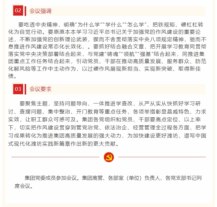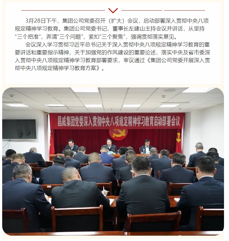 集團(tuán)公司黨委啟動部署深入貫徹中央八項規(guī)定精神學(xué)習(xí)教育